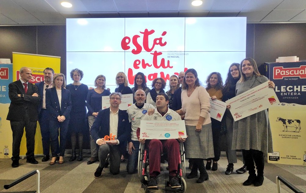 Fundación MásfamilIa ha sido premiada por los empleados de Calidad Pascual, que vuelven a mostrar su compromiso con la salud, el empleo de calidad y el desarrollo social, a través de la 3º edición del concurso ‘Está en tu mano’ que también ha premiado a otras tres entidades sociales: La Asociación de Familias de Personas con Parálisis Cerebral (APAMP), la Fundación Juegaterapia y la Fundación Solidaridad y Reinserción.